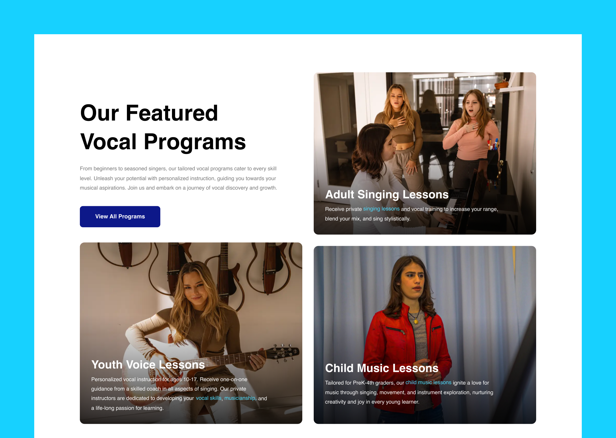 The project began with a focused Discovery phase aimed at understanding the studio’s audience: aspiring singers, performers, and vocal students seeking expert guidance in a supportive, non-intimidating environment. This insight informed a strategy centered on clarity, approachability, and trust, ensuring the website felt welcoming without sacrificing professionalism.