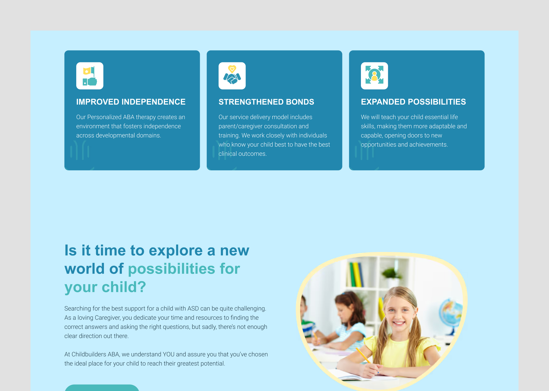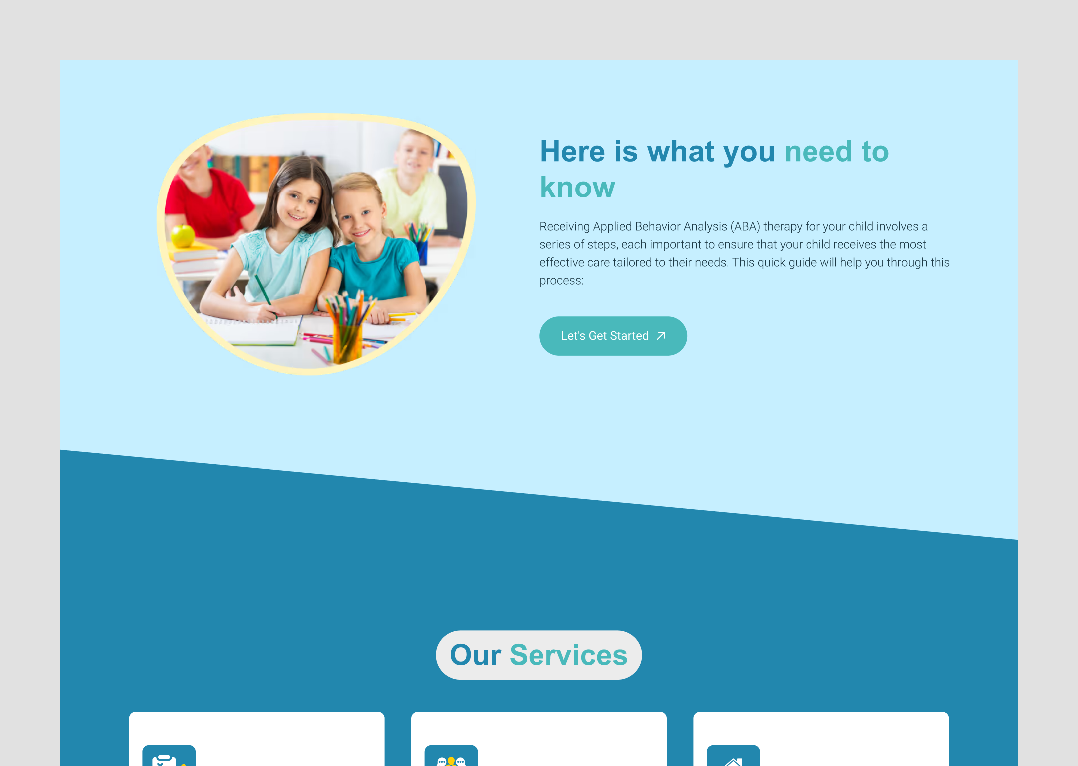 Human-Centered Photography: We emphasized authentic imagery showing real children engaged in activities, families interacting positively with therapists, and moments of genuine connection. These weren't stock photos of generic "autism therapy"—they were carefully selected images that showed progress, joy, and the human relationships at the core of ABA work. This visual storytelling reinforced the emotional promise the copy made.