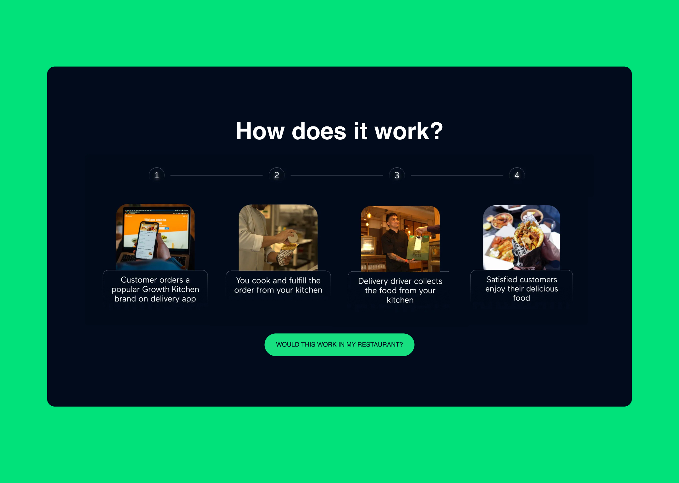 The content strategy was designed to highlight the benefits of utilizing existing kitchen space and staff to expand business opportunities. We focused on creating engaging narratives that resonate with restaurant owners looking for innovative ways to increase revenue.